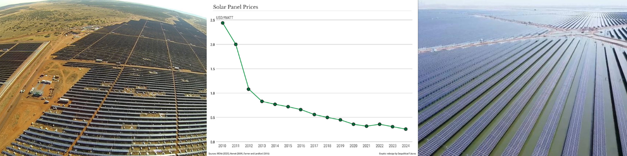 La Cina non è guidata dall'ideologia, ma da necessità economiche e strategiche. Ha ormai una grandissima produzione di pannelli solari, batterie e turbine eoliche. La produzione supera la domanda interna, dunque Pechino cerca sempre nuovi mercati per l'esportazione, inondandoli di hardware a basso costo e offrendo anche finanziamenti ai paesi clienti. Nel solo 2024 la Cina ha installato oltre 300 gigawatt di nuova capacità solare, portando il suo totale a circa 1.100 GW, di gran lunga più di ogni altro paese al mondo. I prezzi dei moduli solari sono molto al di sotto di qualsiasi concorrente statunitense o europeo.