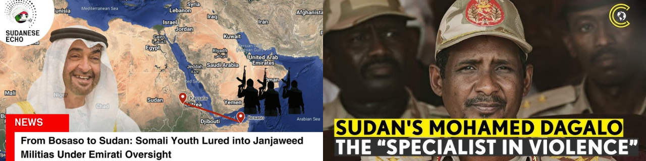 Dalla Primavera Araba in poi gli Emirati Arabi Uniti hanno condotto una campagna controrivoluzionaria in tutto il mondo arabo, finanziando colpi di stato, armando milizie e alimentando guerre per procura. La loro politica estera si basa sul sabotaggio preventivo per sventare le rivolte. Il sostegno degli Emirati Arabi Uniti alle RSF è innegabile: i loro veicoli di trasporto sono di fabbricazione emiratina, equipaggiati con motori britannici. Il flusso di armi dagli Emirati verso la RSF dal Ciad e dalle regioni orientali della Libia è controllato dal Generale Khalifa Haftar, così come mercenari, droni avanzati di fabbricazione cinese, armi leggere, mitragliatrici pesanti, veicoli corazzati, artiglieria da campagna e da mortaio.