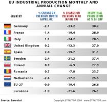 Il 12 giugno 2009 l'Eurostat ha pubblicato le statistiche sulla produzione industriale nel primo quadrimestre nei paesi dell'Unione Europea.